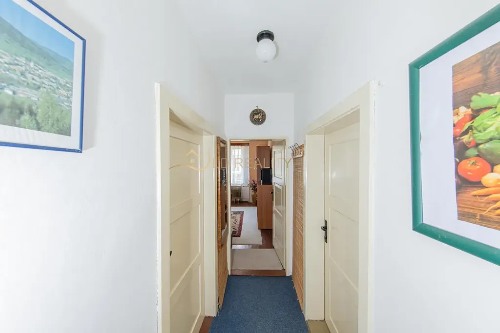 Prodej chalupy se zahradou v obci Vrbno pod Pradědem. Chalupa je dispozičně řešena jako 3+1, zast.plocha 135 m2, zahrada 494 m2. Je částečně podsklepená (dvě průchozí místnosti s okny do zahrady), v přízemí je zádveří, kuchyně, tři samostatné pokoje, koupelna s vanou a WC, komora, prosklená veranda se vstupem na zahradu. Okna jsou dvojitá kastlová, topení kombinace plyn + kotel na TP, obecní voda, žumpa, střecha sedlová, krytina eternit. Nad celou obytnou částí domu je půda, která nabízí využití jako další obytný prostor. Zahrada je osázena ovocnými stromy a okrasnými keři. Na pozemku je umístěn dřevěný zahradní domek, který nabízí další úložný prostor. Nemovitost je situovaná v klidné ulici, přímo před domem je možnost parkování. Je vhodná k trvalému bydlení i jako podnikatelská příležitost na krátkodobé pronájmy v této oblíbené turistické lokalitě. Cena je uvedena bez poplatku za zprostředkování. Doporučuji prohlídku.