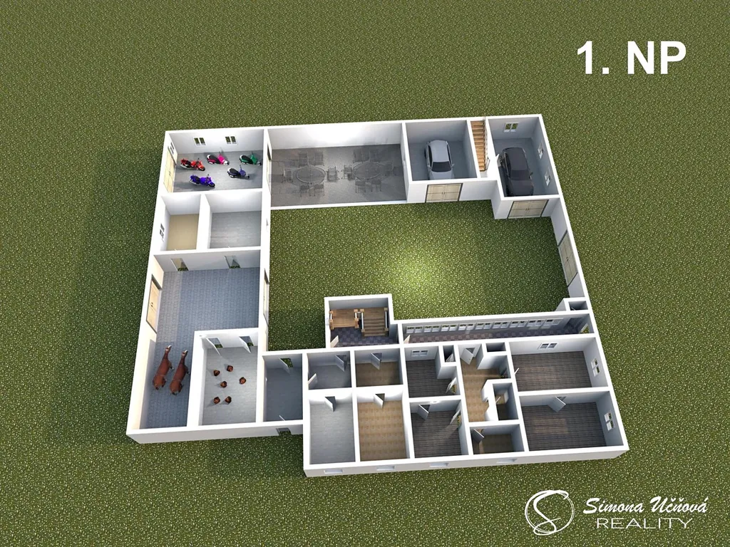 V 1. NP (cca 135 m2) se nachází byt 3+1 s komorou a vstupem do sklepní místnosti, dále přípravna, prádelna a kotelna s uhelnou.
