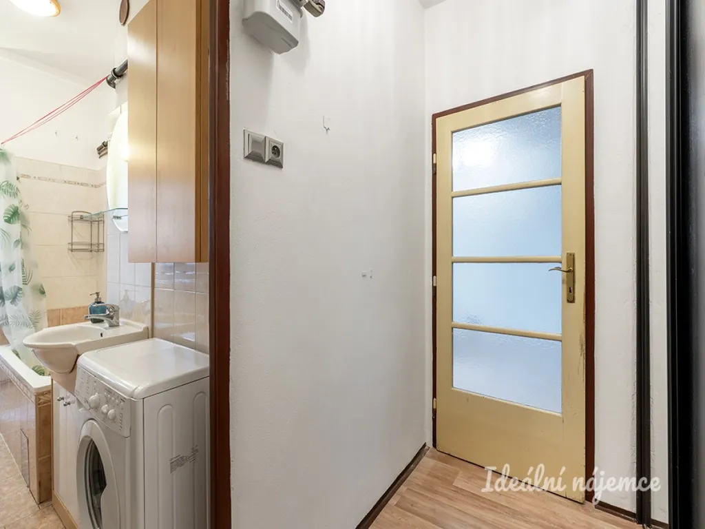 Byt se nabízí částečně vybavený. Kuchyně disponuje lednicí s mrazákem, elektrickou troubou s plynovou varnou deskou, mikrovlnnou troubou a digestoří. Obývací část je zařízena pohovkou, konferenčním stolem a obývací stěnou. Součástí ložnice je postel a 2 šatní skříně. V koupelně je vana, umyvadlo, koupelnová skříňka, pračka a WC. V předsíni je vestavěná skříň.