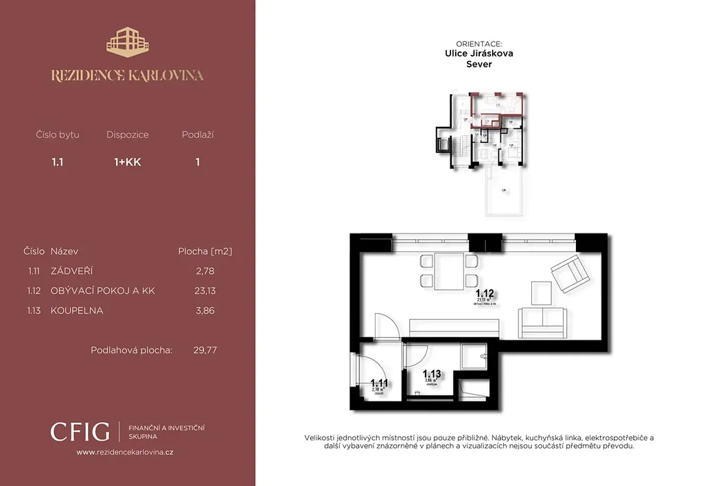 - Možnost parkování ve vnitrobloku nebo z ulice Jiráskova (není zahrnuto v ceně)