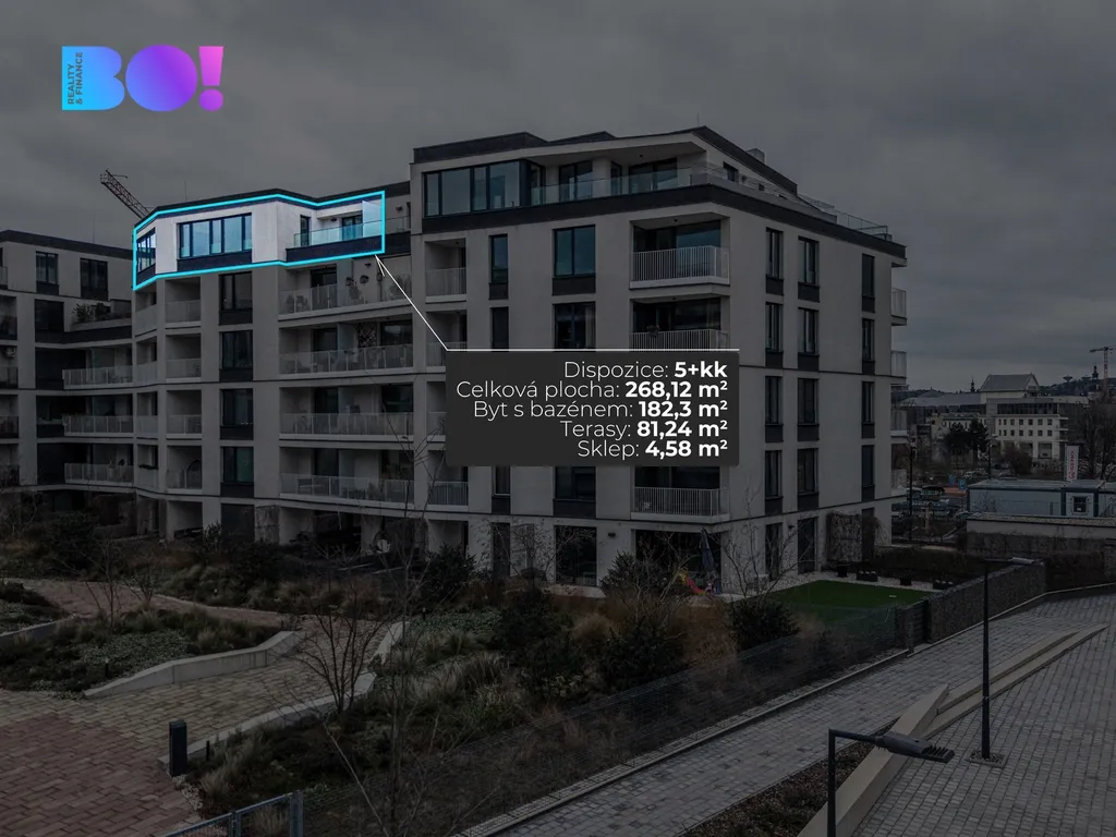 Byt s bazénem 182,3 m² s terasy 81,24 m² a sklepem 4,58 m² je šikovně dispozičně řešen tak, aby nabízel dostatek prostoru pro komfortní bydlení.