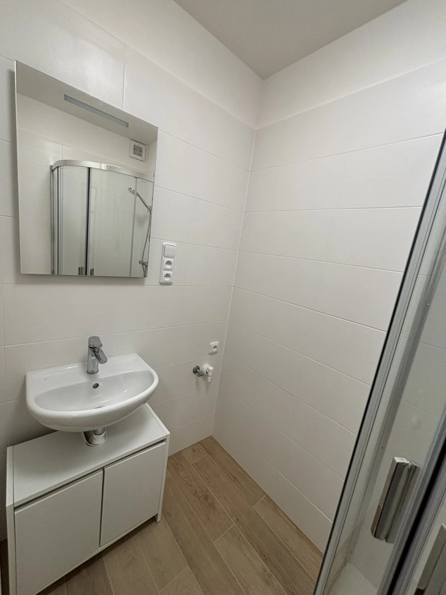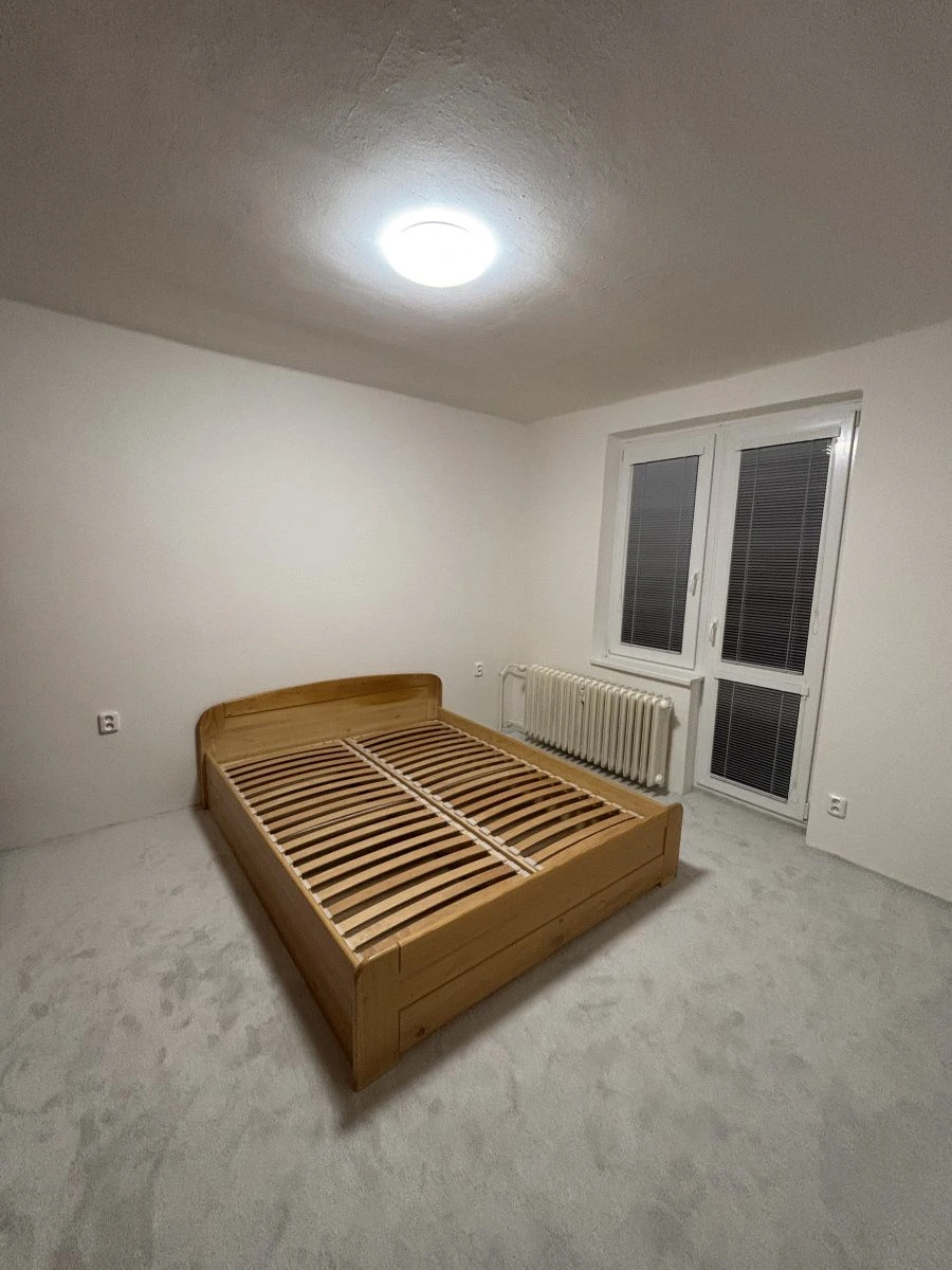 Byt je nabízen částečně zařízený, což dává možnost uzpůsobit si interiér podle vlastního vkusu. Byst je po nákladné rekonstrukci a můžete tak být první, kdo bude v bytě bydlet. V ložnici je postel a skříně.