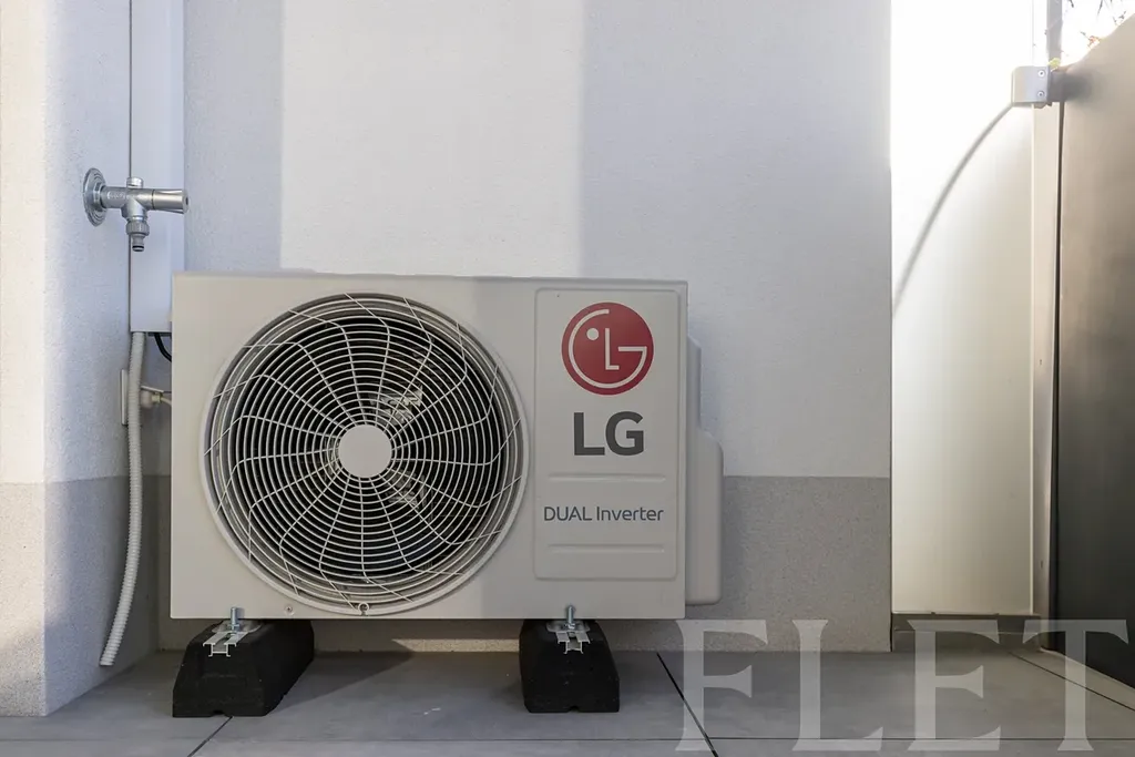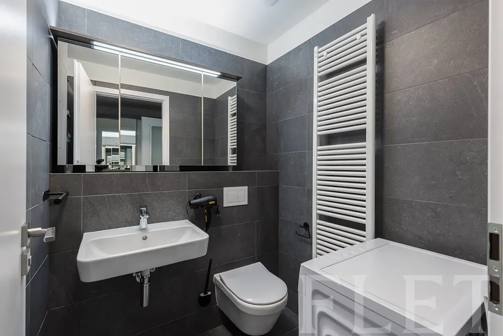Byt je vybaven moderní kuchyňskou linkou se spotřebiči – varnou deskou, troubou, digestoří a myčkou nádobí. V koupelně se nachází sprchový kout, toaleta a dostatek místa pro pračku. Součástí vybavení je také klimatizace, která zajišťuje komfort i v letních měsících.