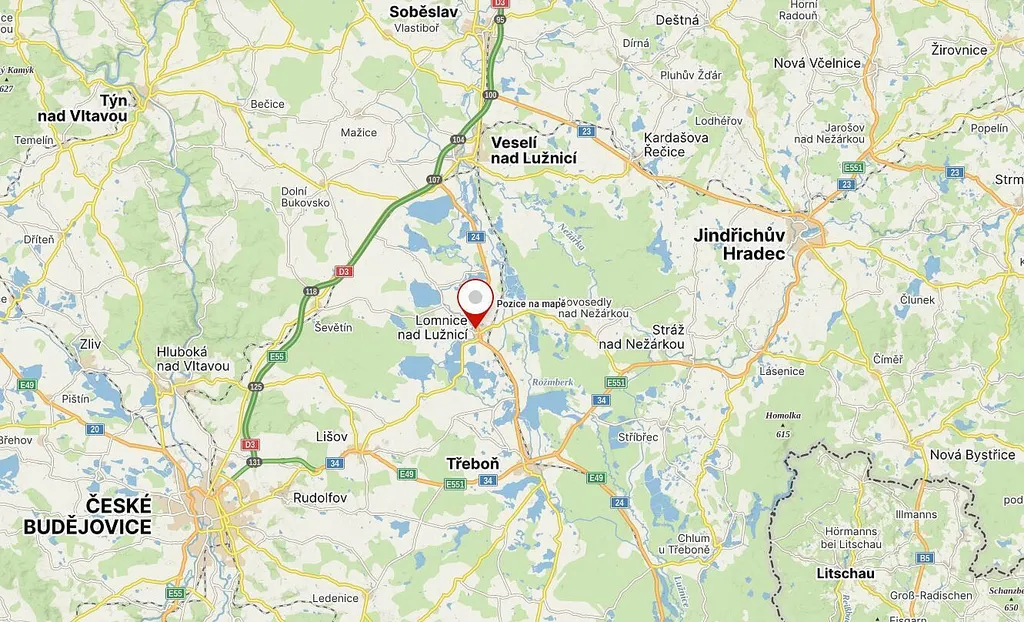 Předmětem prodeje je soubor pozemků o výměře 16 506 m² v obci Lomnice nad Lužnicí. Lomnice nad Lužnicí se nachází v okrese Jindřichův Hradec v Jihočeském kraji, leží při hranici Chráněné krajinné oblasti Třeboňsko. Pozemky jsou přístupné po zpevněné polní cestě. Dle katastru nemovitostí jsou pozemky evidovány jako orná půda, vodní plocha a trvalý travní porost. V okolí pozemků se nachází rybníky Rožmberk, Velký Tisý nebo také Koclířov Lomnice nad Lužnicí je také názvem katastrálního území. V případě zájmu nás neváhejte kontaktovat