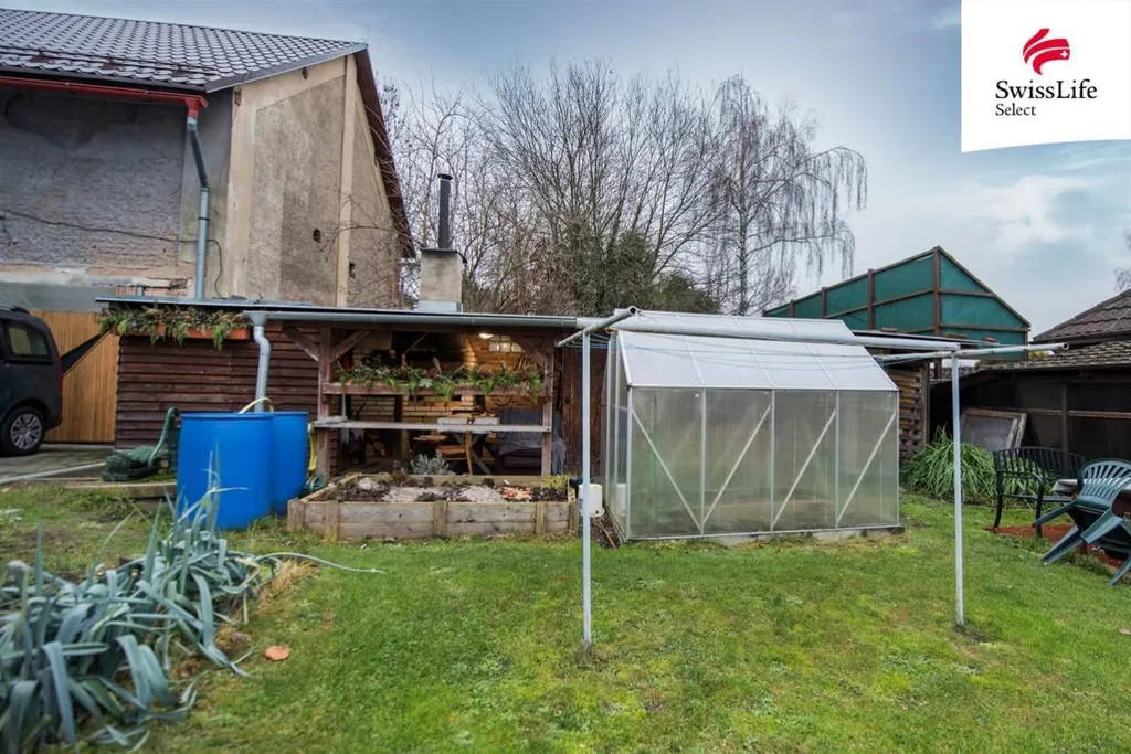 Jedním z výrazných benefitů je menší zahrada se skleníkem, která poskytuje prostor k odpočinku, pěstování i trávení času venku. Právě tento prvek dodává bytu atmosféru, kterou v klasických bytech nenajdete, spojení bydlení v domě s vlastním kouskem zeleně.