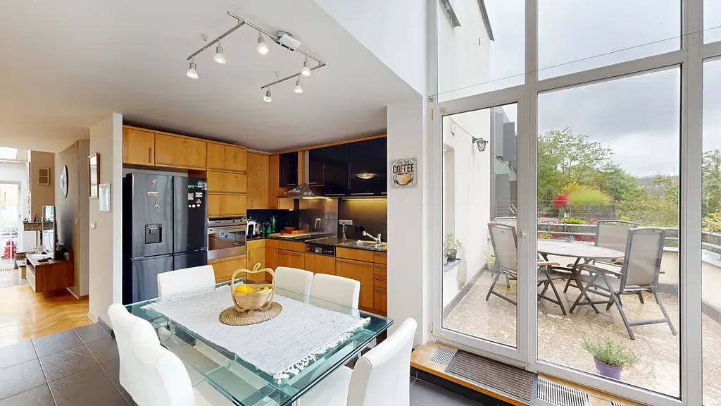 Nabízíme k prodeji prostorný byt 4+KK v osobním vlastnictví o celkové výměře 125,81 m², se zahradou o rozloze 188 m² a vlastním garážovým stáním. Byt se nachází ve 4. nadzemním podlaží domu v klidné části Prahy 5 – Košíře, a to s orientací na východ a západ.