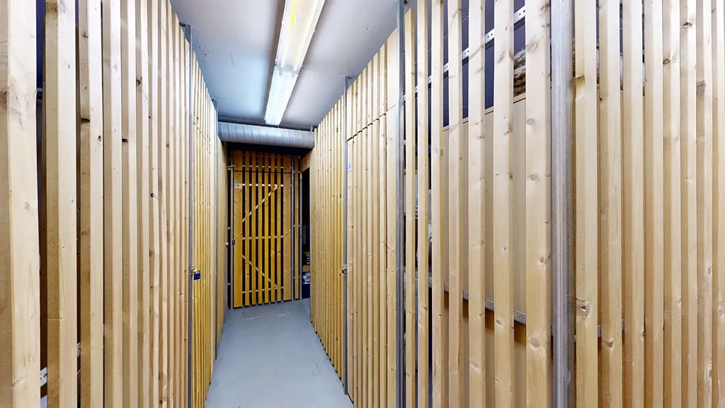 K bytu dále náleží sklepní kóje (6,16 m²) a garážové stání v 1. NP domu.