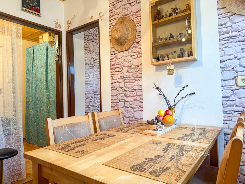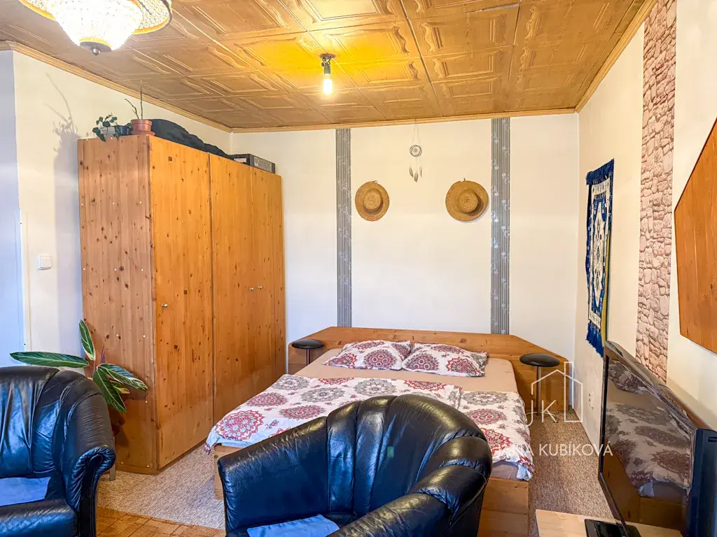Dispozičně byt nabízí jeden prostorný obytný pokoj, který lze prakticky rozdělit na obývací a spací část. Kuchyň je vybavena kuchyňskou linkou a kamny. Koupelna je osazena vanou, umyvadlem a toaletou. V bytě se nachází vestavěná skříň, která poskytuje dostatek úložného prostoru.