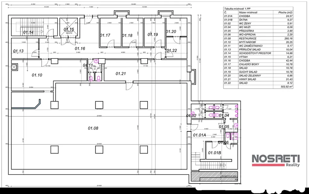 Společnost NOSRETI reality s.r.o. jako majitel nabízí k pronájmu tyto prostory: