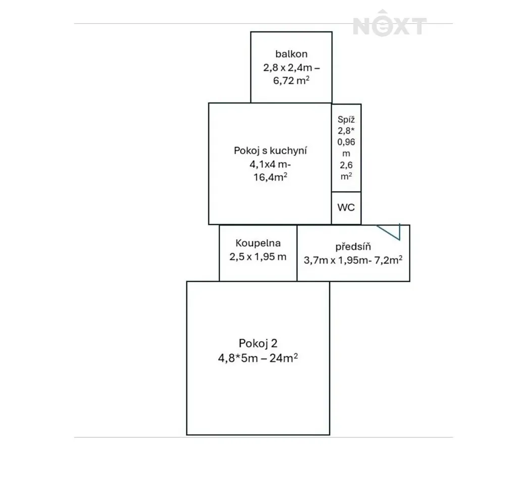 Exkluzivně Vám nabízíme k pronájmu byt 2+kk o rozloze 55 m2, který se nachází ve třetím patře cihlového domu s atmosférou historické elegance. Byt disponuje dvěma prostornými pokoji 24m2 a 16,4m2, přičemž jeden z nich je propojen s kuchyňským koutem a nabízí přímý vstup na prostornou terasu 6,72m2 orientovanou do klidného vnitrobloku. Díky tomu se stává dominantou tohoto bytu a umožňuje tak trávit zde volný čas. Dále je zde samostatná koupelna 4,8m2 s vanou, samostatné WC, komora 2,6m2 a velmi prostorná předsíň o výměře 7,2m2. Byt prošel zdařilou rekonstrukcí, která citlivě zachovává původní prvky, jako jsou dřevěné parkety, vysoké stropy a další detaily dodávající interiéru nadčasový charakter. Součástí bytu je také sklep poskytující dostatek úložného prostoru.