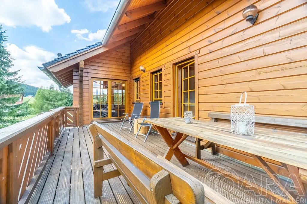 Prodej výjimečného srubu u Klínovce – jen 400 m od lanovky a s jedinečnými výhledy.
