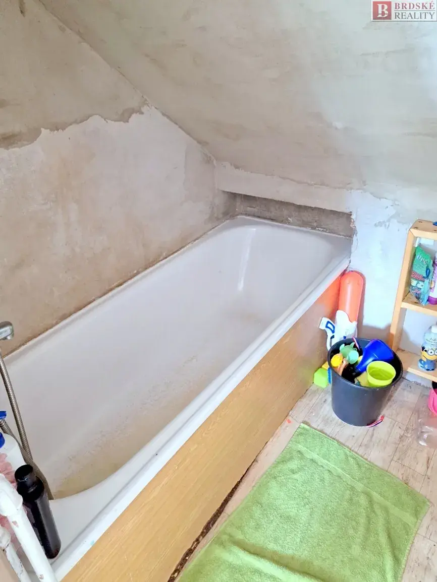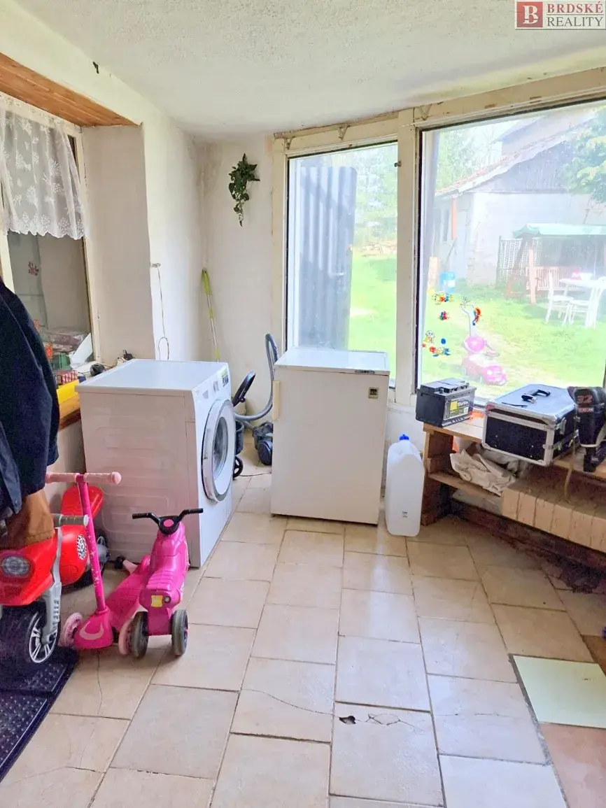 Na obytnou část navazuje původní stodola, kterou tvoří garáž, původní prádelna, sklípek a vstup na půdu.
