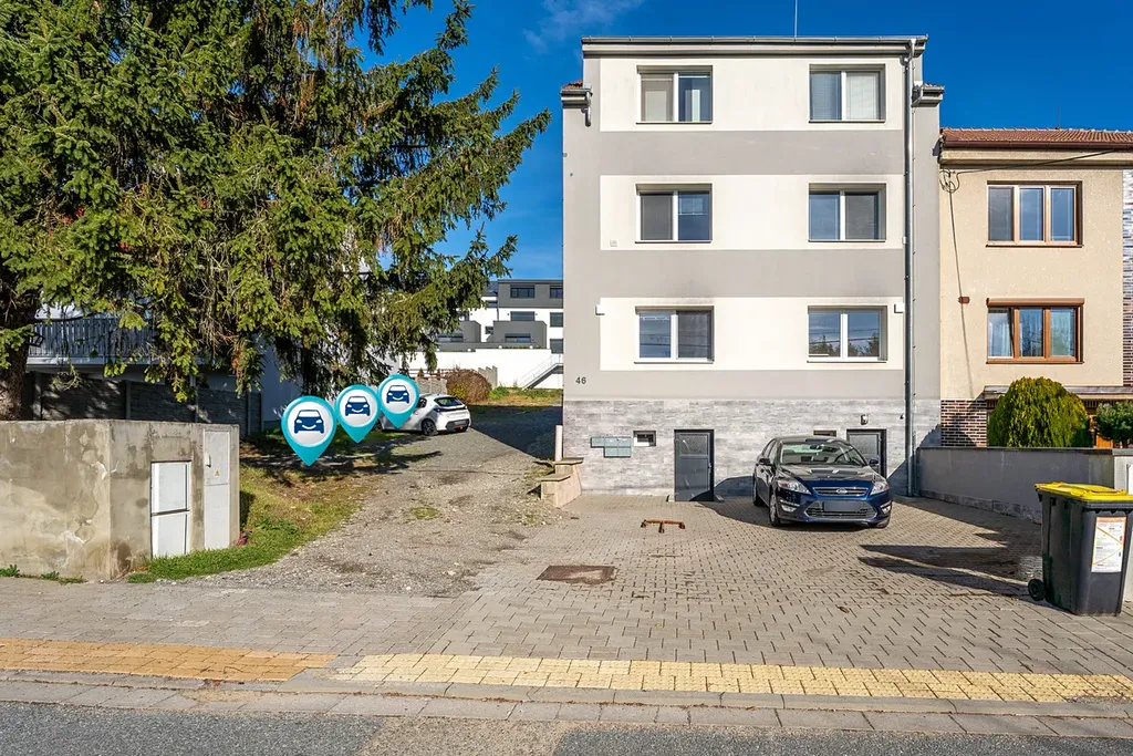 Velkou předností je bezproblémové parkování kdykoli během dne přímo na pozemku u domu. Jako příjemný bonus mohou nájemníci využívat posezení pod pergolou s možností grilování.