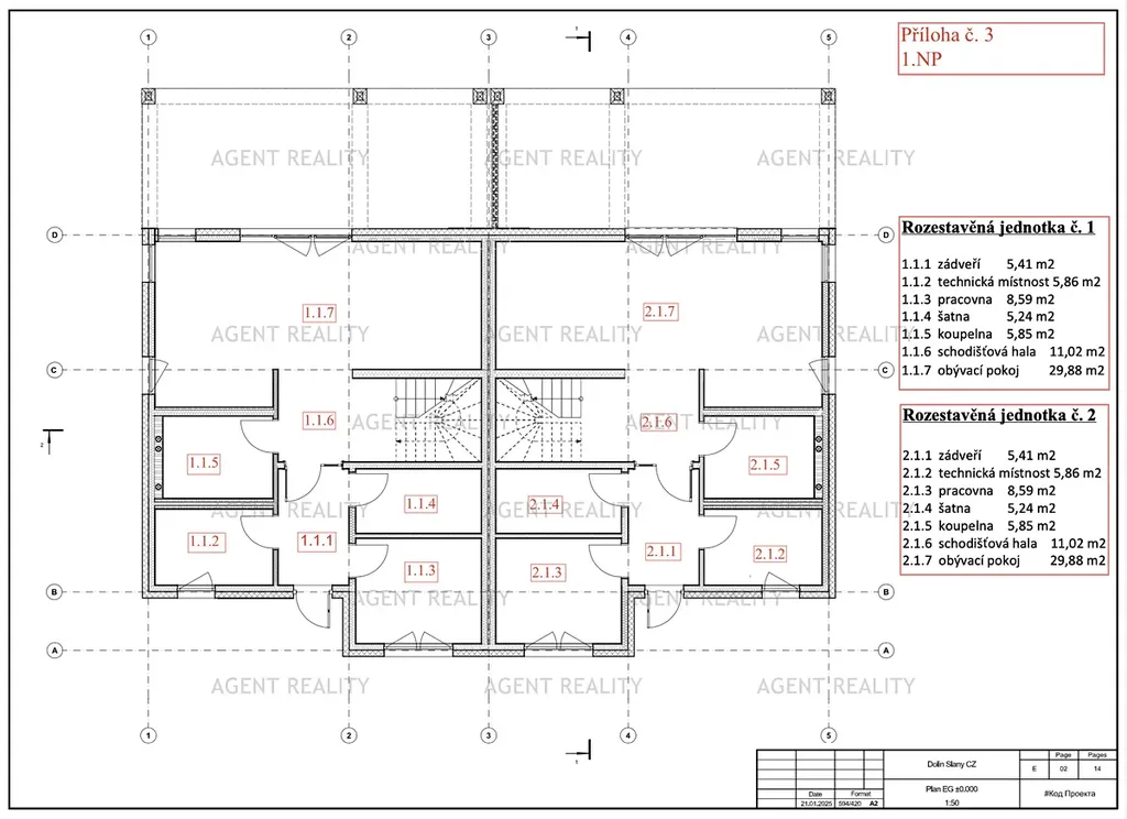Nízkoenergetický dům, vystavěný na dvě samostatné nezávislé jednotky pod jedním číslem popisným. Společné plochy včetně zahrady jsou vymezeny výhradním právem užívání části pozemku cca. 376 m2 .