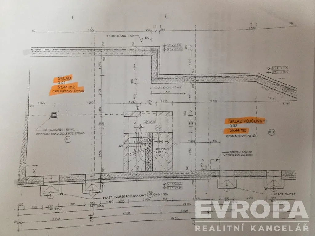Suterén (108 m²): multifunkční prostory sloužící jako půjčovna, obchodní část a skladové zázemí