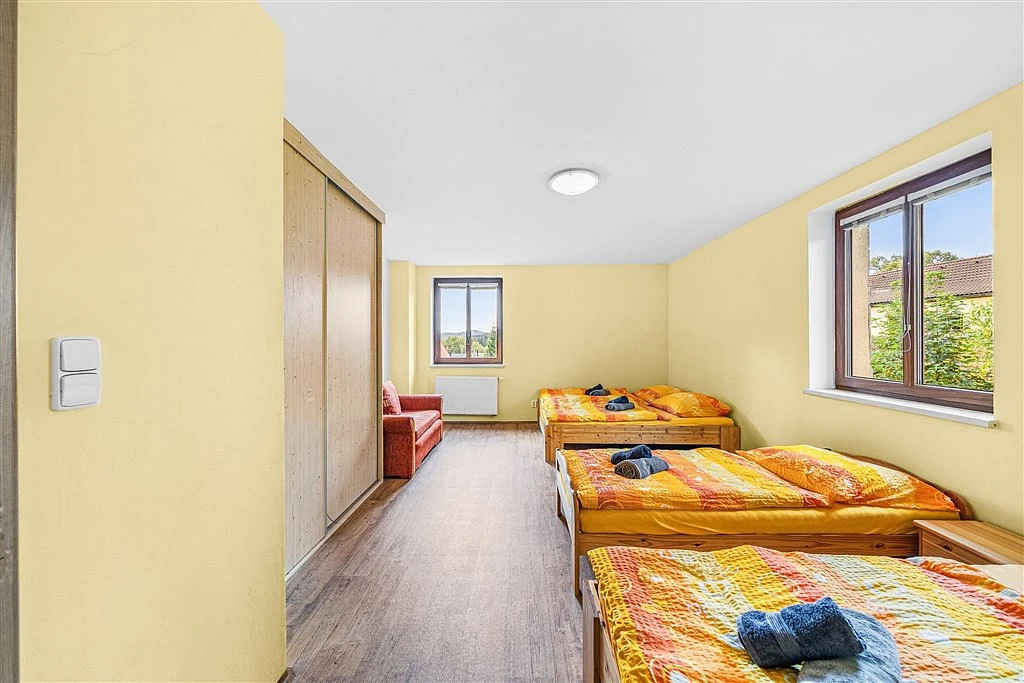 Celý objekt je koncipován jako apartmánový dům s pěti samostatnými jednotkami, ideální pro větší rodinu, skupinu přátel nebo krátkodobý pronájem.