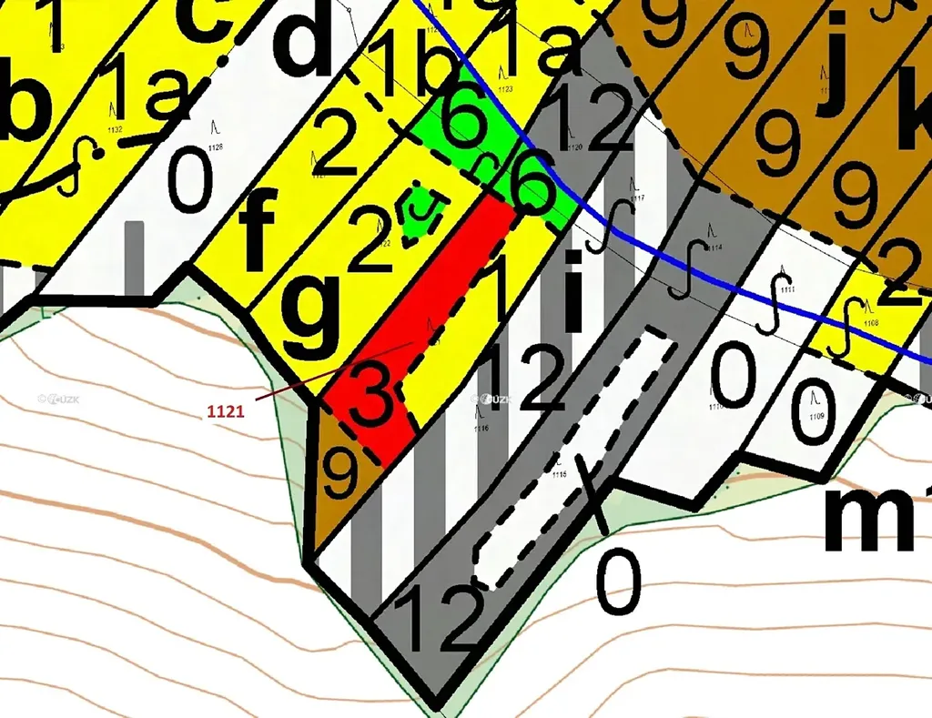 Lesní pozemek o výměře 2998 m2, parcelní číslo 1121, podíl 1/1, katastrální území Jedov, obec Náměšť nad Oslavou, obec s rozšířenou působností Náměšť nad Oslavou, okres Třebíč, Kraj Vysočina. Částečně po těžbě.