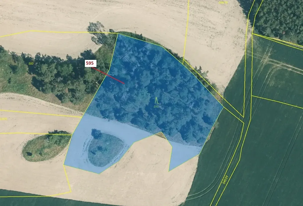 Lesní pozemek o výměře 4 801 m2, parcelní číslo 595, podíl 1/1, katastrální území Česká Doubravice, obec Manětín, obec s rozšířenou působností Kralovice, okres Plzeň-sever, Plzeňský kraj. Po těžbě.