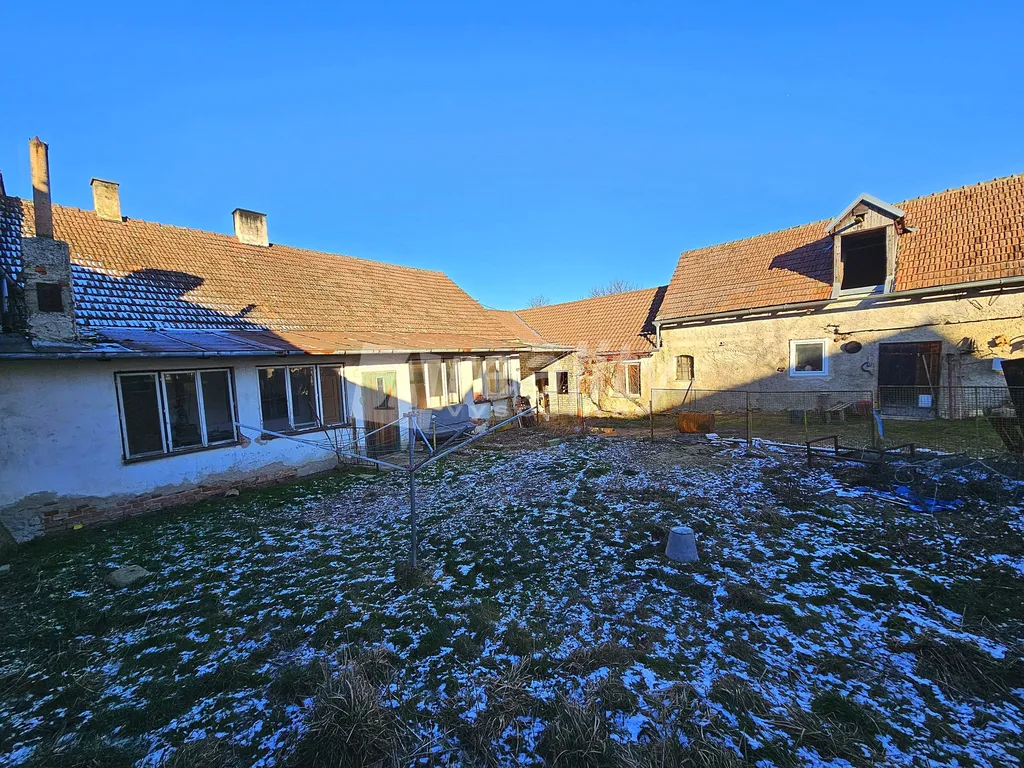 Přední obytná část je určena spíše k rekonstrukci. V obývacím pokoji a ložnici s orientací do ulice jsou plastová okna. Dominantou je velká kuchyň, která může sloužit i jako pokoj s kuchyňským koutem. Dále je zde možnost půdní vestavby. Do domu je přiveden obecní vodovod, aktuální vytápění zajišťují kamna, v případě potřeby je přímo ve zdi domu plynová přípojka. Přístup do dvora je umožněn vysokým krytým průjezdem, který lze využít i k parkování vozidla. K tomuto účelu slouží i vedlejší garáž, kam se za sebe vejdou dva osobní automobily. Na tuto část navazuje chlév/dílna. V zadní části se pak nachází dvě stodoly, které mohou mít širokou škálu využití. Lze zde vybudovat vesnické bydlení, ustájit zvířata, umístit zemědělskou a jinou techniku, případně uskladnit rozměrný majetek. Do této zadní části je také umožněn samostatný přístup a příjezd z obecní komunikace.