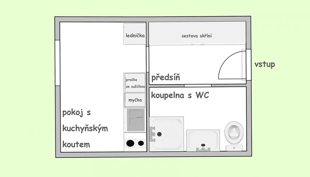 Obytný prostor s kuchyňským koutem 13,3 m2