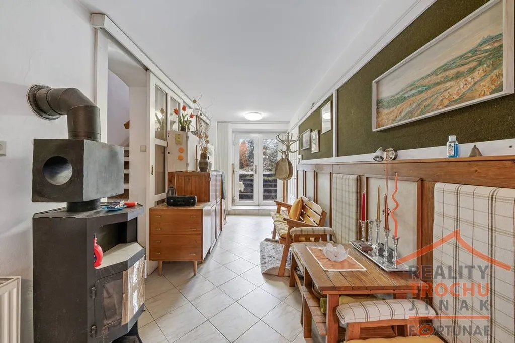 V domě je k dispozici pět pokojů, což poskytuje dostatek prostoru. V podkroví se nachází zasklená lodžie, ze které je přístup na zahradu. Dům je částečně podsklepený + sklep na pozemku, plocha sklepů činí cca 15 m². Na pozemku se dále nachází 3x sklad 7,5 m2 a dílna 8,7 m2, a dále obytná letní místnost s krbem 14 m2.