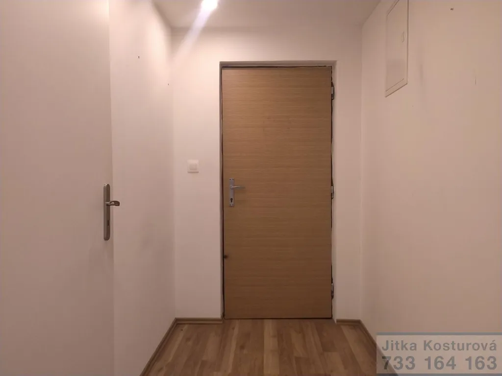 Dispozice bytu nabízí vstupní chodbu, pokoj s kuchyňskou linkou vybavenou elektrickým sporákem. V koupelně se nachází masážní sprchový kout, umyvadlo a WC. Byt je po rekonstrukci, plastová okna se žaluziemi, plovoucí podlahy v kombinaci s dlažbou. Byt má atypickou dispozici působící útulně a vzdušně, okna jsou směřována na jižní stranu do vnitro bloku, což zajišťuje klid a sluneční svit po velkou část dne.
