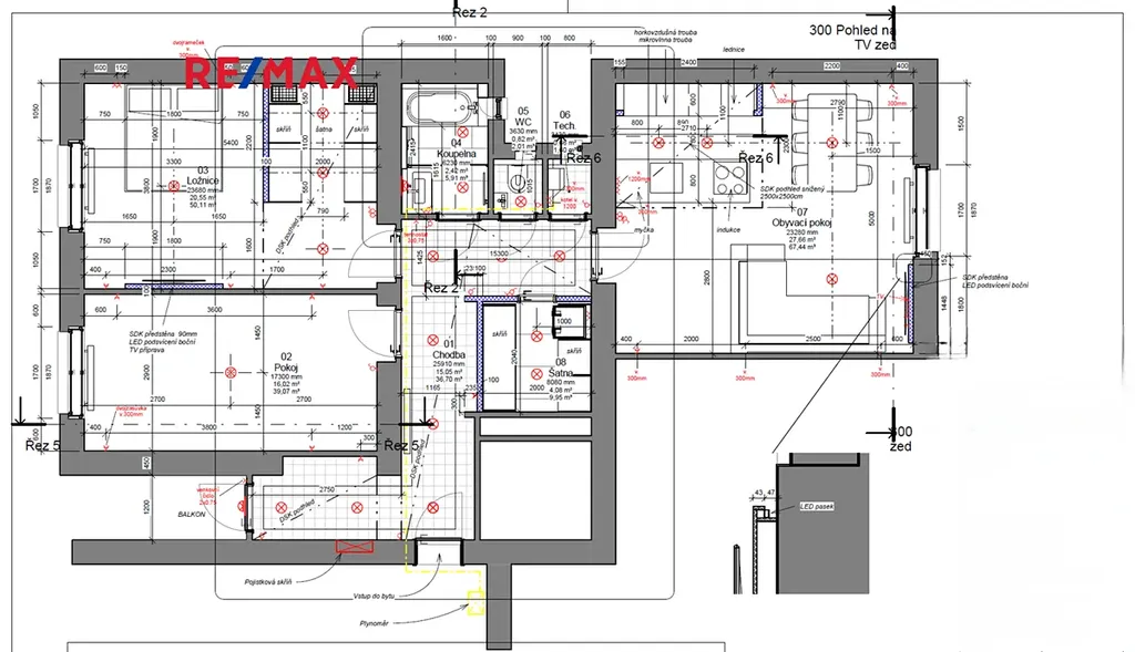 vnitřní plocha bytu - 87,3 m2