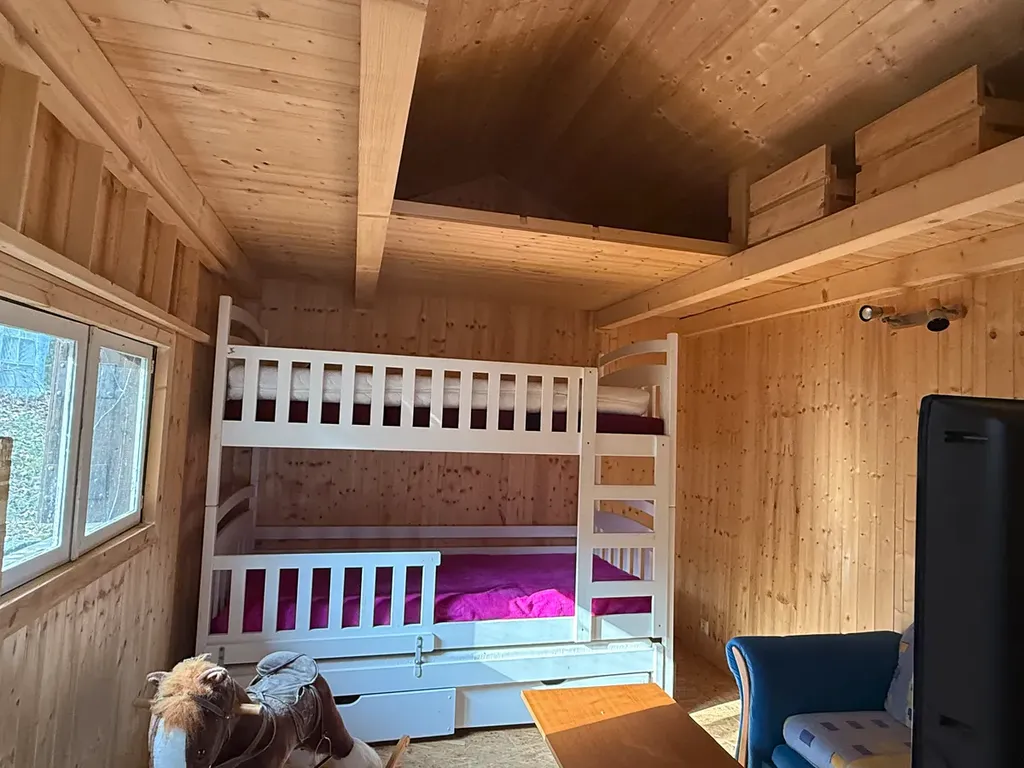 Chata uvnitř má obývací pokoj s krbem, chodbičkou, s kuchyní, umyvadlem, zádveřím a sociálním zařízením pod chatou. K příjemnému posezení s výhledem na do údolí lze využít verandu po obvodu chaty. Vedle chaty je zahradní domek, který slouží jako další prostor pro spaní.