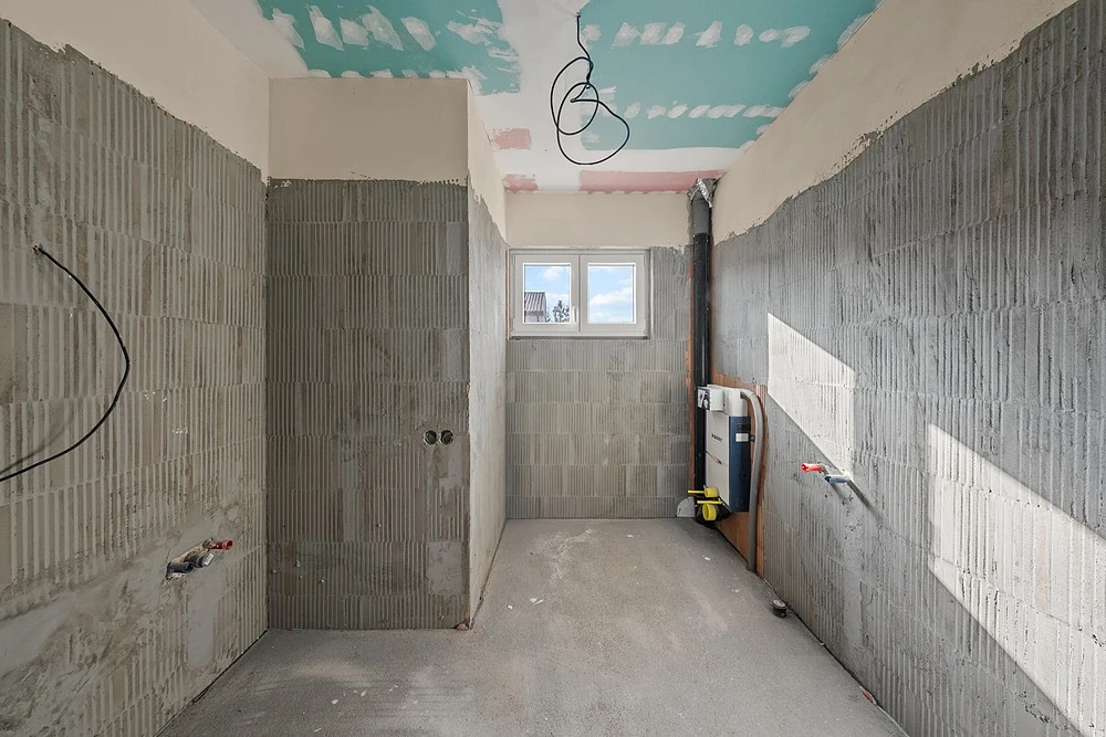 V přízemí domu se nachází vstupní chodba se vstupem do prostorné kuchyně, která navazuje na obývací pokoj se vstupem na venkovní terasu, připravená koupelna se sprchovým koutem a WC. Schodištěm se dostaneme do prvního patra, kde se nacházejí 3 samostatné pokoje a připravená koupelna s vanou společná s WC.