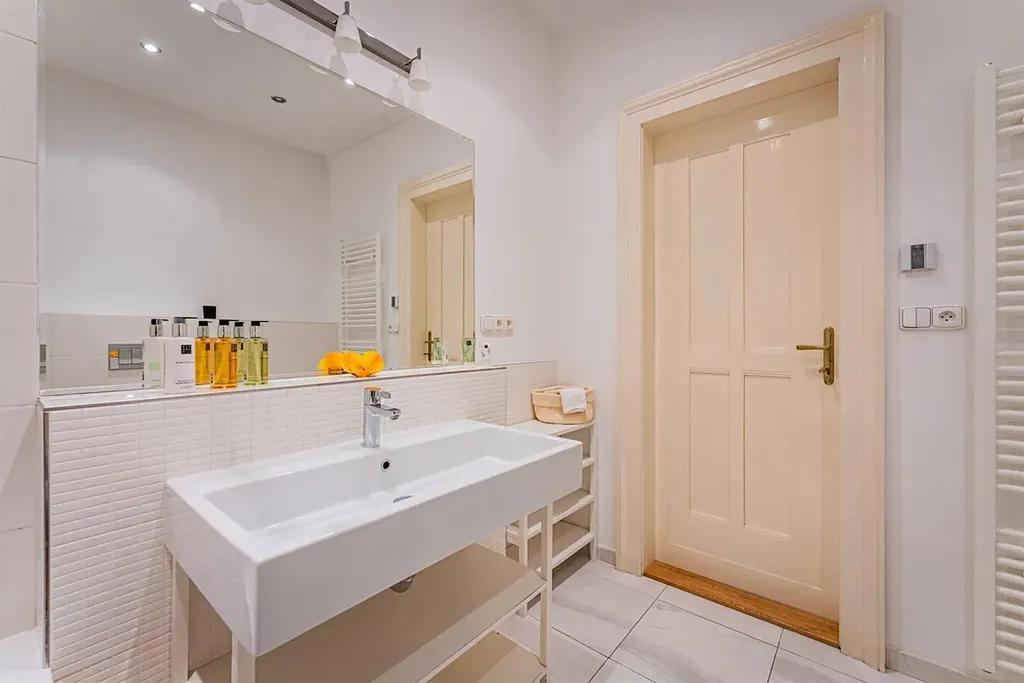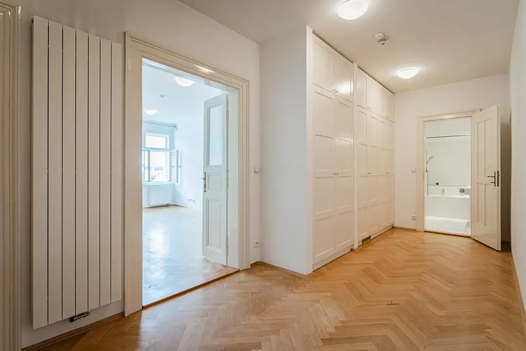 Reprezentativní prostorný byt po rekonstrukci o dispozici 2+kk, s obytnou plochou 73m2, je situovaný v 5.patře reprezentativní budovy s výtahem, v lukrativní lokalitě na Praze 1 Staré Město. Interiér bytu je nezařízený a nabízí velkolepé světlé pokoje s vysokými stropy, dispozičně se sestává ze vstupní chodby s dostatkem úložných prostor v podobě prostorných skříní, se vstupem do obývacího pokoje spojeného s moderní plně zařízenou kuchyní (sporák/trouba, lednice/mrazák, myčka, mikrovlnná trouba), dále navazuje vstup do světlé ložnice vybavené prostornou šatní skříní. Z chodby je vstup do koupelny s vanou, bidetem a toaletou, a další oddělené toalety. Podlahy tvoří kvalitní parkety a dlažba.