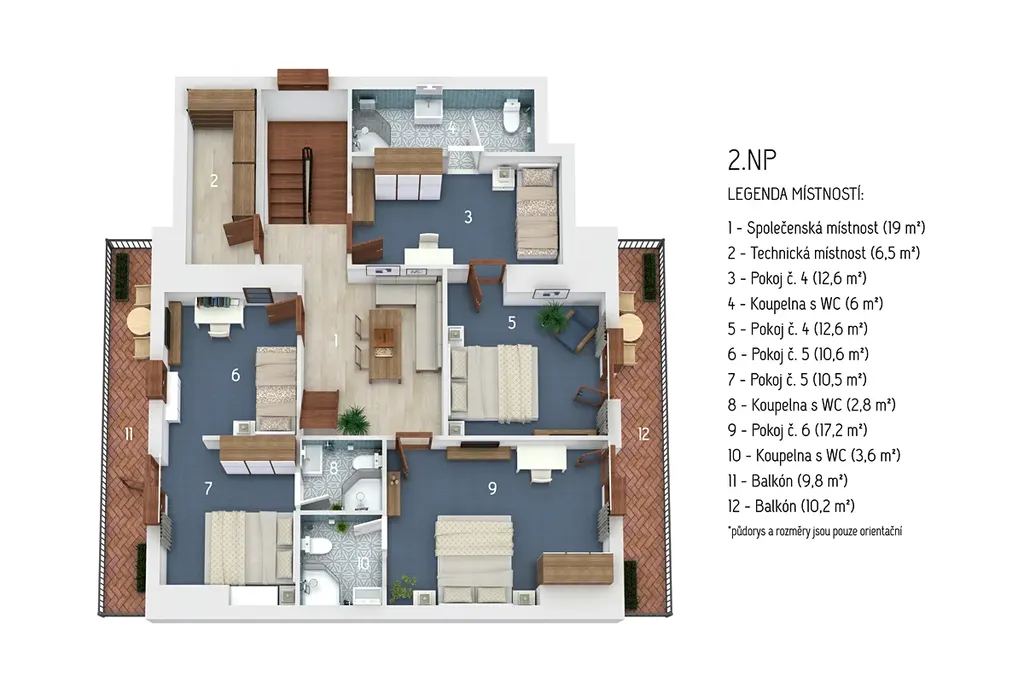 • Bydlení správce: samostatný byt s vlastním elektroměrem, kompletně podlahovým vytápěním a krbovými kamny (7 kW)
