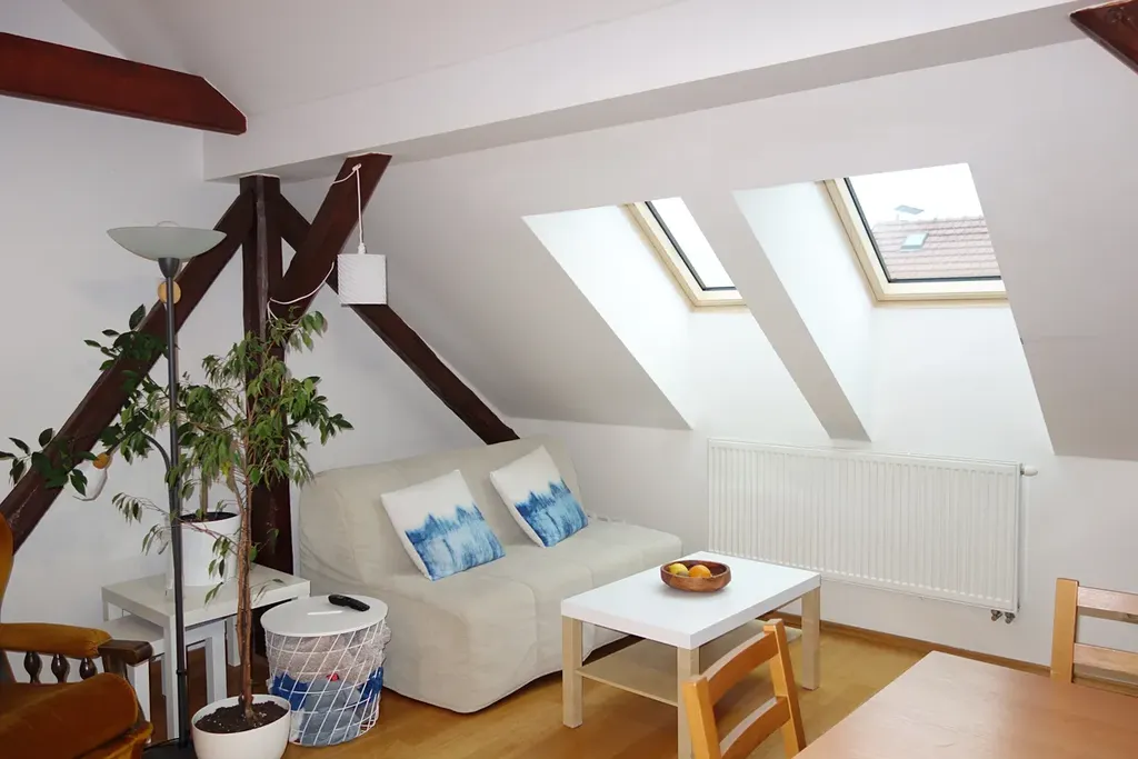 Okna jsou orientována do klidné zahrady a do ulice Bulharská.