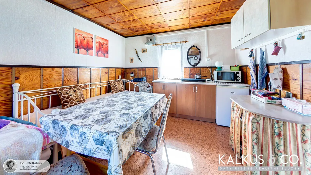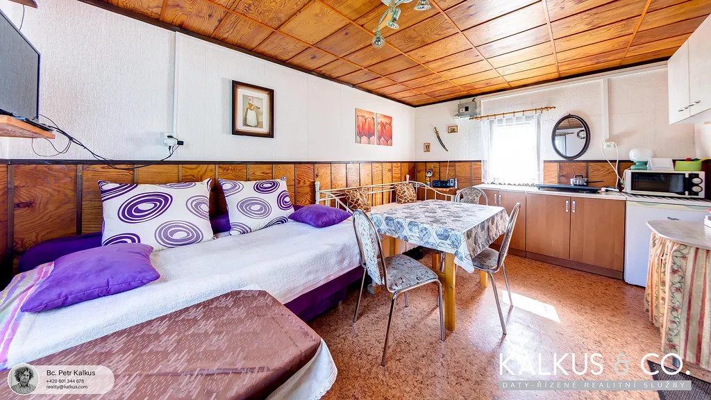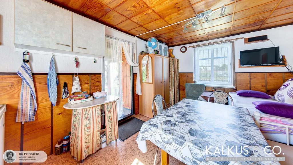 Prodáme zahradní chatu ve výborném stavu v zahrádkářské kolonii na okraji obce Borohrádek. Na rovinatém pozemku v osobním vlastnictví a o výměře 391 m² stojí chata (cca 17.5m²) s přilehlými přístavky vč. dřevěné komory (cca 1.5 m²), dřevěné kolny (cca 4 m²) a také venkovní zastřešené posezení (cca 12m²). Dřevostavba je napojena na elektřinu 220/380V (vl. elektroměr), užitková voda je převedena na pozemek (v provozu: duben-říjen). Vytápění je olejovým radiátorem, k dispozici přímo na pozemku je venkovní sprcha – mobilní, suché WC, další sociální zázemí je ve společných prostorech kolonie. Přístup k chatě je zajištěn podílem na příjezdové cestě, autem se dá zajet až k pozemku.