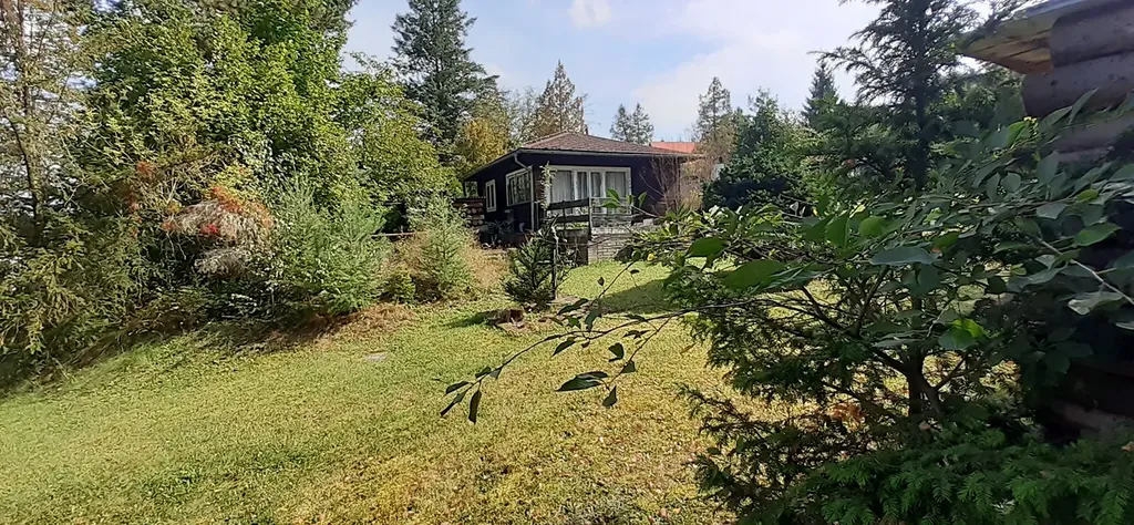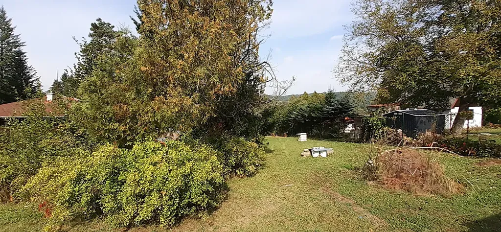 Nyní se na pozemku nachází stará chatka, kterou je potřeba zbourat… ale můžete ji možná využít jako provizorium po dobu výstavby.