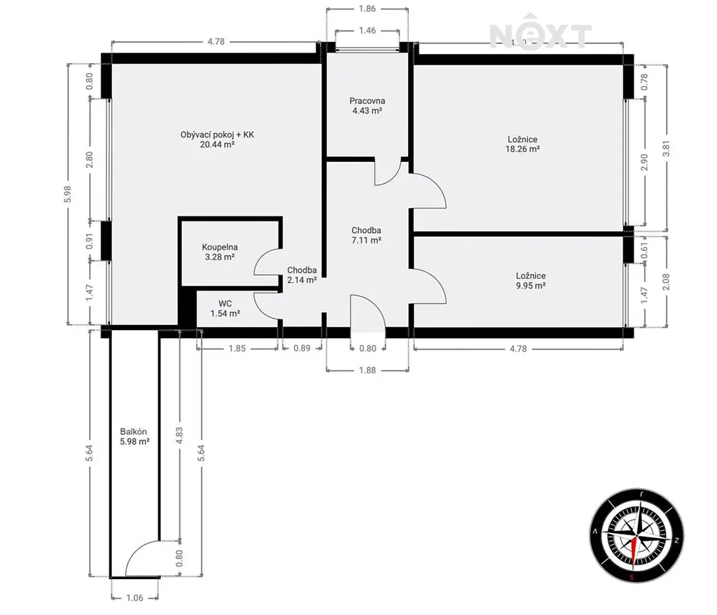 Dispozice a standard dle fotoprezentace (poslední foto pouze ilustrativní s variantou případné další modernizace bytu). Podlahová plocha bytu 67 m2, lodžie 6 m2.