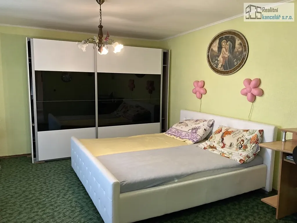 Vstup, předsíň 2,96 m², pokoj 15,7 m², pokoj 18,3 m², kuchyň 15,5 m², předsíň u vstupu do koupelny a WC 3,9 m², koupelna s vanou 5,35 m², samostatná toaleta 2,21 m². Obytné místnosti jsou průchozí. Půdní prostor je přístupný z garáže.