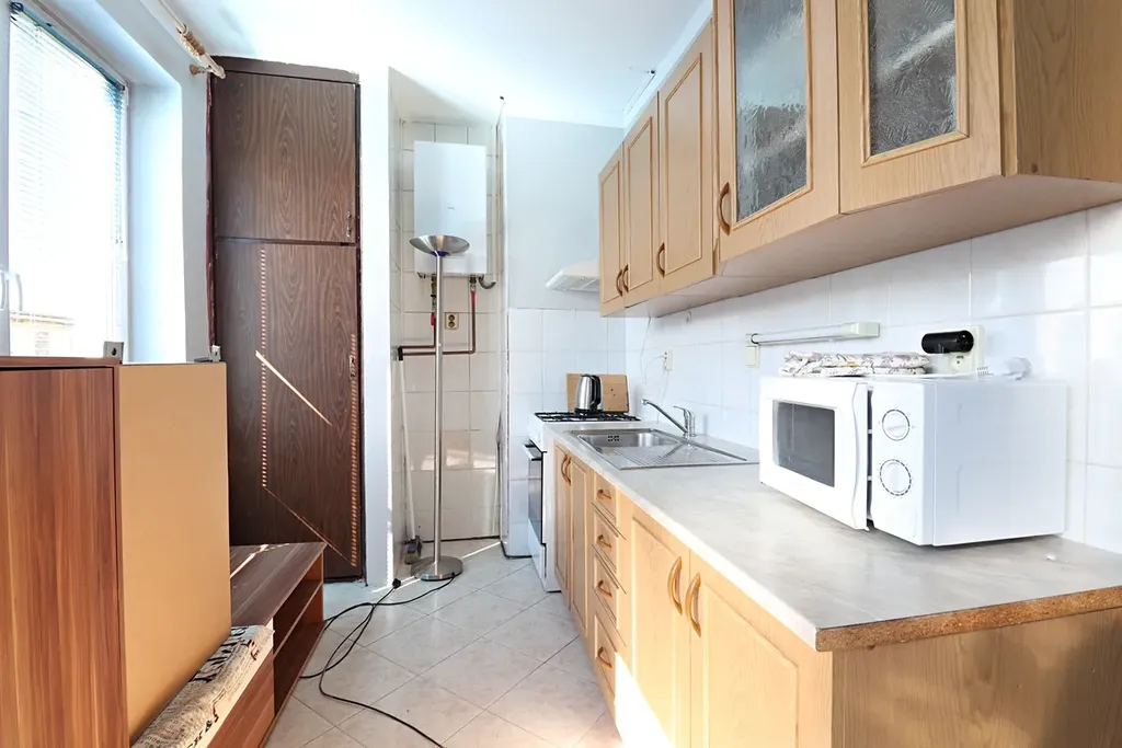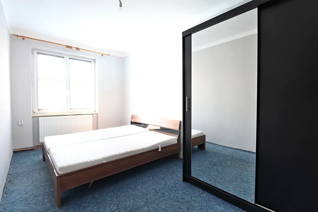 Nabízíme k prodeji bytovou jednotku 2+kk, která se nachází ve 2 nadzemním podlaží cihlového domu bez výtahu. Byt je tvořen zádveřím, že které je vstup do ložnice, dále na WC, do koupelny a do obývacího pokoje, ze kterého je vstup do kuchyně. K bytu náleží dvě sklepní kóje. Bytová jednotka je vytápěna ústředním topením s vlastním elektrokotlem, ohřev vody zajišťuje el.bojler. Okna plastová.