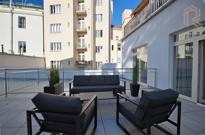 K dlouhodobému pronájmu nabízíme kompletně vybavený, stylově zařízený byt 1+kk (24 m²) s výjimečně velkorysou terasou o ploše 26,1 m², která výrazně rozšiřuje obytný prostor bytu.