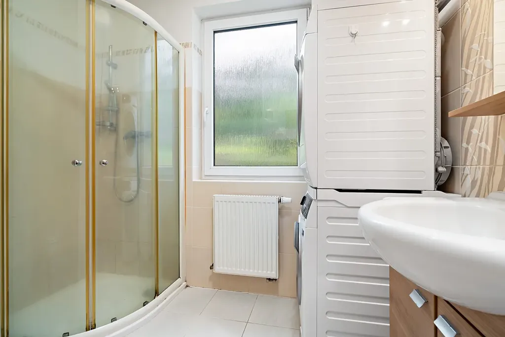 - vytápění a ohřev vody tepelným čerpadlem zn. Carrier, v kuchyni a spodní koupelně podlahové topení, zbylá část domu radiátory a krb
