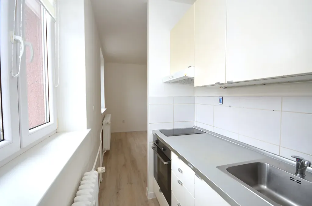 Nabízíme k pronájmu pěkný byt 1+kk v 3 nadzemním podlaží cihlového domu. Skládá se z obývacího pokoje s kuchyňský koutem, který je vybavený kuchyňskou linkou, el deskou, troubou, mikrovlnou troubou a lednicí. V chodbě se je k dispozici pračka. Koupelna je vybavená sprchovým koutem a toaletou. Veškerá občanská vybavenost v místě. Cena nájmu 7.700,-Kč + služby 2.460,-Kč (teplo, tepla voda, studená voda, internet). Elektřinu si přepisuje nájemník na sebe. Vratná kauce, provize RK