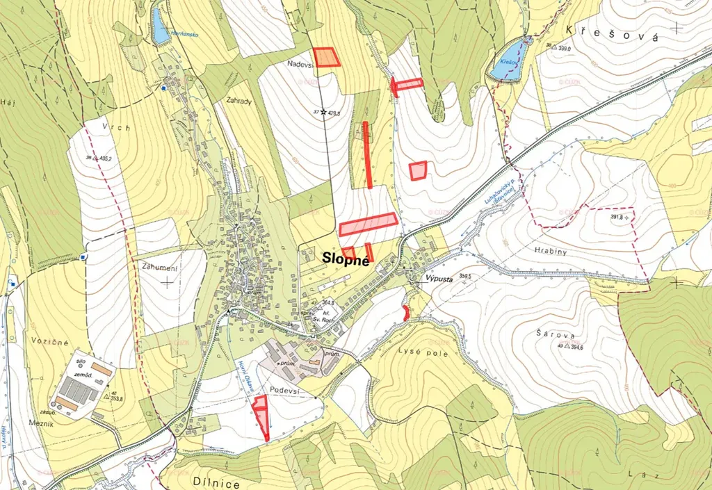 V okrese Zlín, v katastrálním území Slopné, nabízíme k prodeji soubor zemědělských pozemků o celkové výměře 30 047 m². Pozemky jsou zapsány na listech vlastnictví č. 643 a 131.