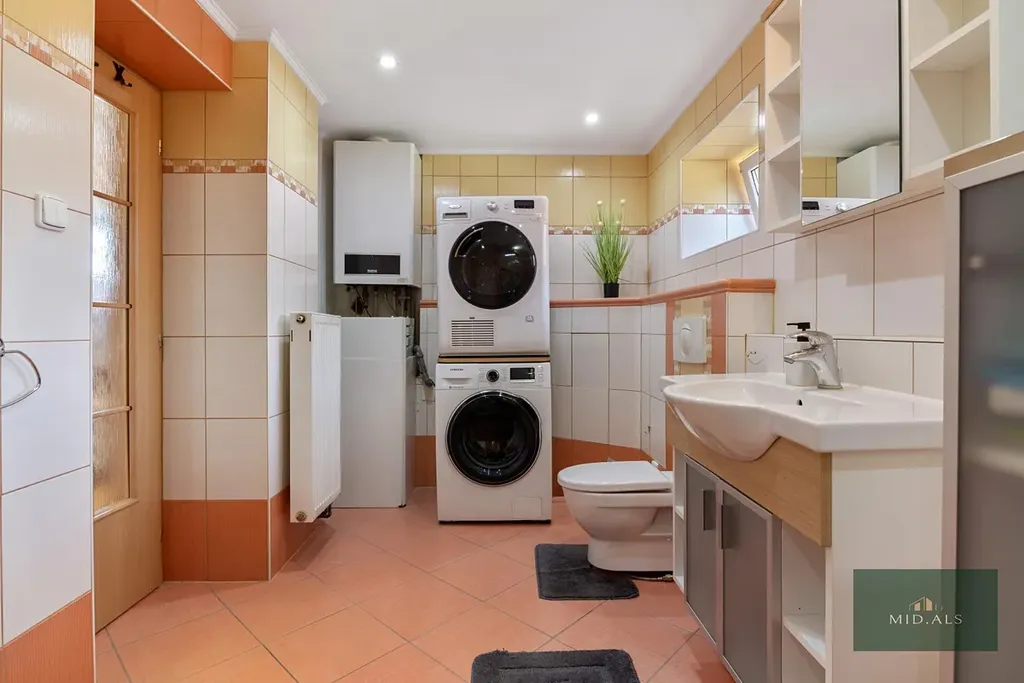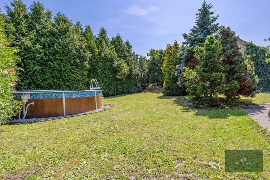 Součástí nemovitosti je také velká dvojgaráž, krásně udržovaná zahrada s bazénem, kryté posezení s pergolou, udírna a domek na dřevo. Zahrada je navíc vybavena podzemní nádrží na vodu a automatickým zavlažovacím systémem. Dům je napojen na čističku i obecní kanalizaci, vodu čerpá z vlastního vrtu, přičemž obecní vodovod se nachází přímo před domem a je možné se na něj napojit.
