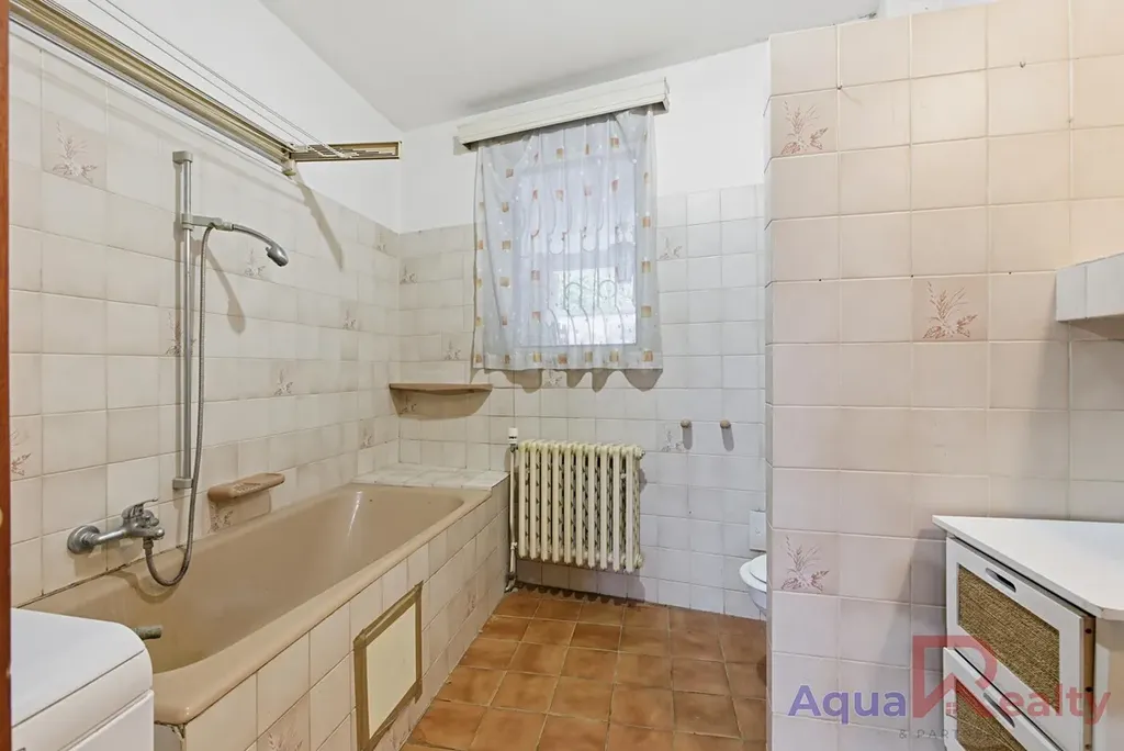 Nemovitost je v původním, udržovaném stavu bez předchozích rekonstrukcí. Interiér s dřevěnými okny, původním vybavením a podlahami z PVC, dlažby a korku čeká na modernizaci podle vašich představ. Technické zázemí zahrnuje vytápění plynovým kotlem, které je nově doplněno o krb, ohřev vody bojlerem a napojení na veřejný vodovod i kanalizaci. Rozvody elektřiny jsou původní hliníkové a fasáda domu je z břízolitu.
