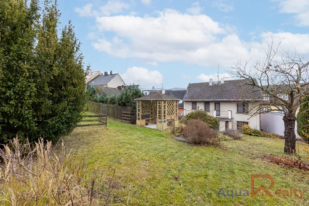 K domu náleží zahrada o rozloze 630 m2, která v kombinaci s klidným okolím městské zástavby nabízí příjemné zázemí. Velkým benefitem je samostatná dvougaráž (cca 30 m2) s původními vyklápěcími vraty, pod níž se nachází dalších cca 45 m2 skladovacích prostor, ideálních pro dílnu nebo sklad.