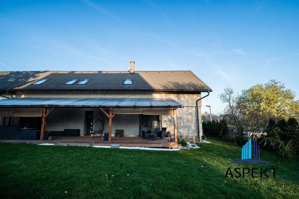 Dům se skládá z dvou podlaží. V přízemí se nachází prostorný obývací pokoj o rozloze cca 36 m², pracovna, koupelna, chodba, jídelna, velmi prostorná kuchyň, úklidová místnost pod schody a technická místnost se spíží. V prvním patře jsou umístěny tři pokoje, ložnice, šatní místnost a druhá koupelna.