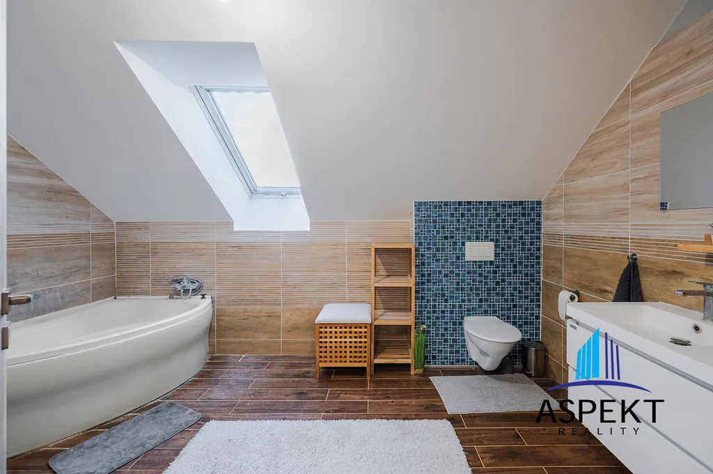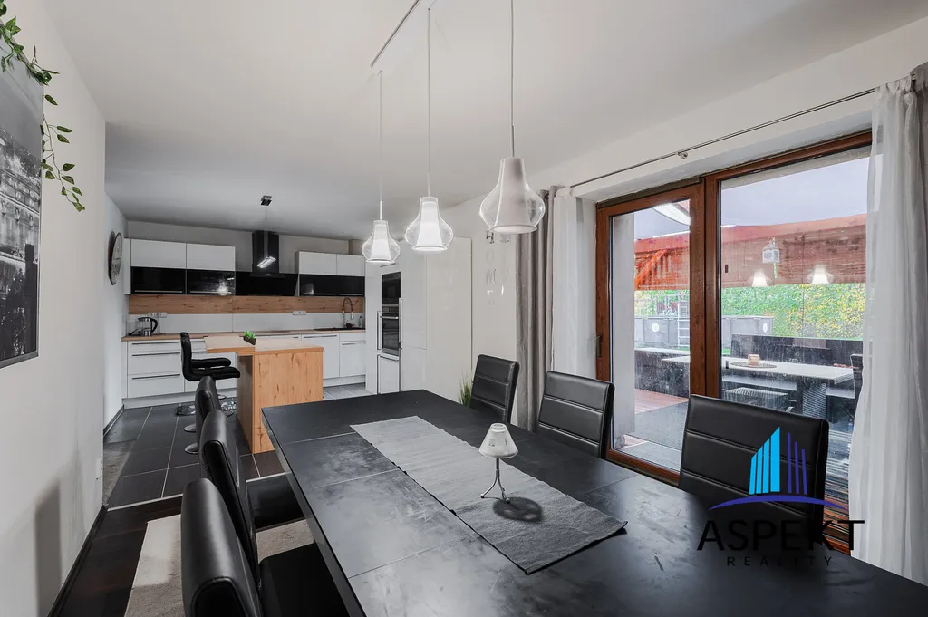 Dále se v domě nachází dvougaráž, která je přístupná přes technickou místnost a nabízí dostatek prostoru pro parkování. Nad garáží je umístěna herní místnost, kde je možné si zahrát kulečník nebo šipky, případně ji využít pro fitness aktivity. Do této místnosti je přivedena elektřina a voda pro nový kuchyňský koutek, což umožňuje její přestavbu na samostatnou bytovou jednotku.