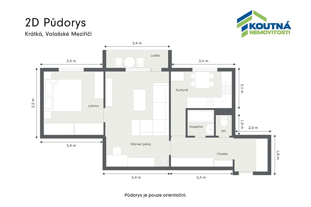 Otápěná plocha se uvádí 52 m2 a 57 m2 je metráž včetně lodžie.