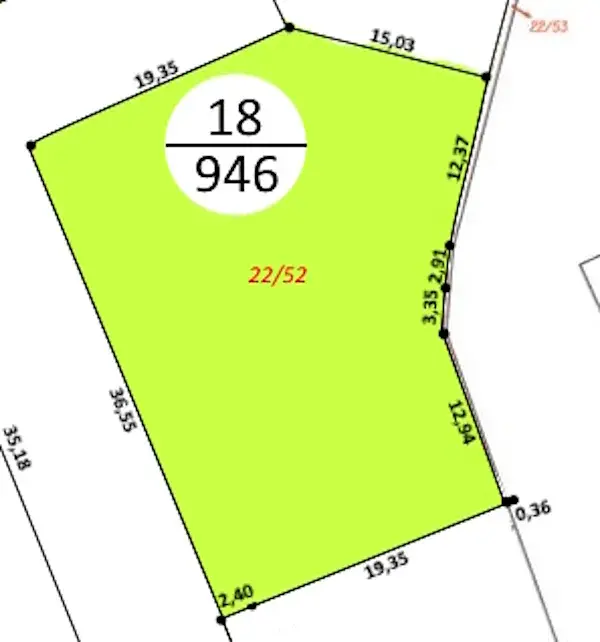 Jedním z nabízených pozemků je pozemek č. 18 o výměře 935 m2.