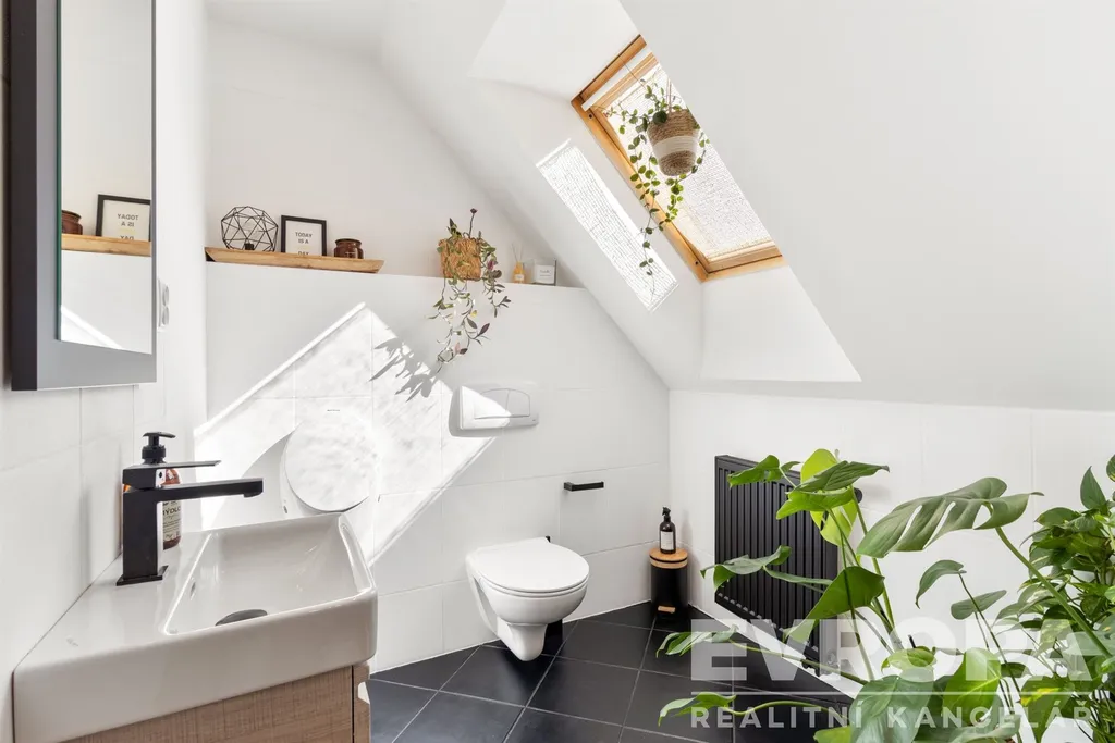 V patře najdete čtyři ložnice, koupelnu a samostatné WC. Nad druhým patrem je částečně pochůzná půda, ideální pro ukládání sezónních věcí.