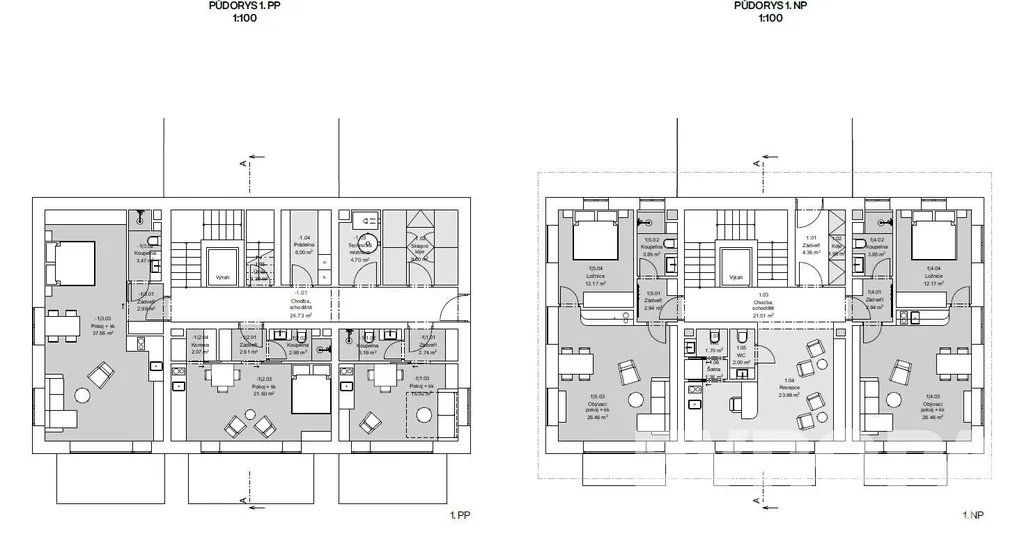 • Jednotky mají vlastní sociální zařízení a kuchyňku, některé přímo s přístupem na terasu nebo balkon